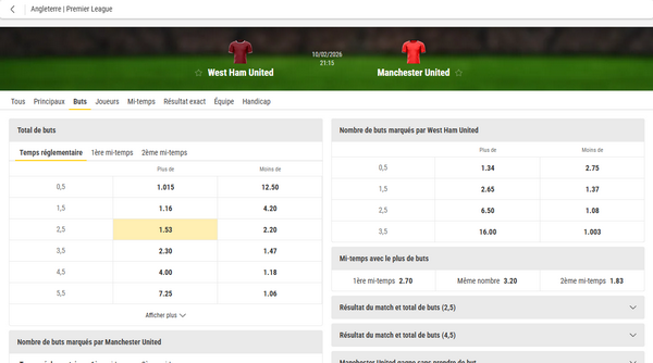 • Sélectionner le résultat souhaité (ex : +2,5 buts)